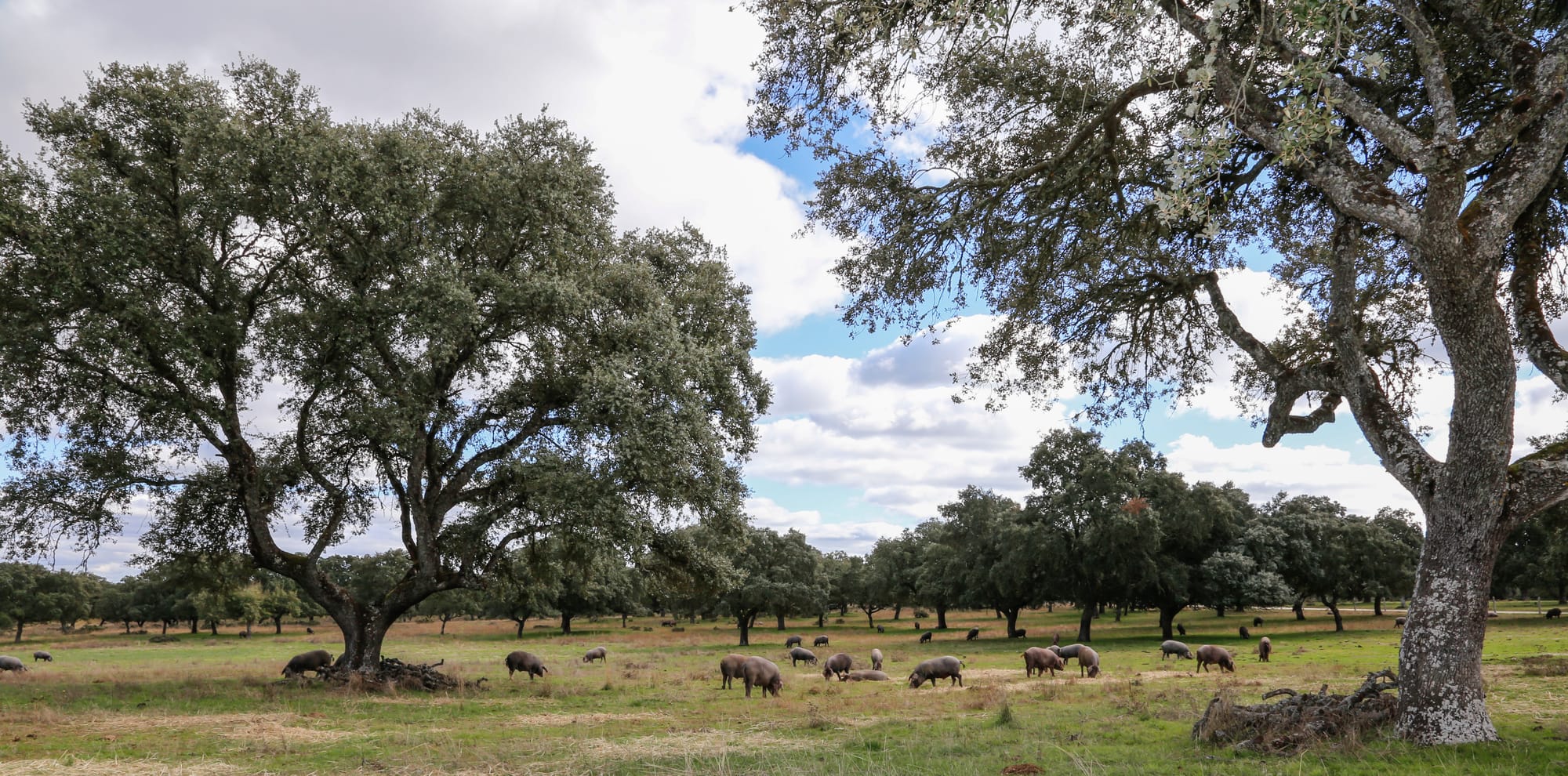 In the final months of their lives, Fermín’s pigs are turned loose to roam the Dehesa—a sprawling oak-dotted pasture in western Spain—during the Montanera season (October through February). There, they feed almost exclusively on acorns (bellotas), wild herbs, and grasses.