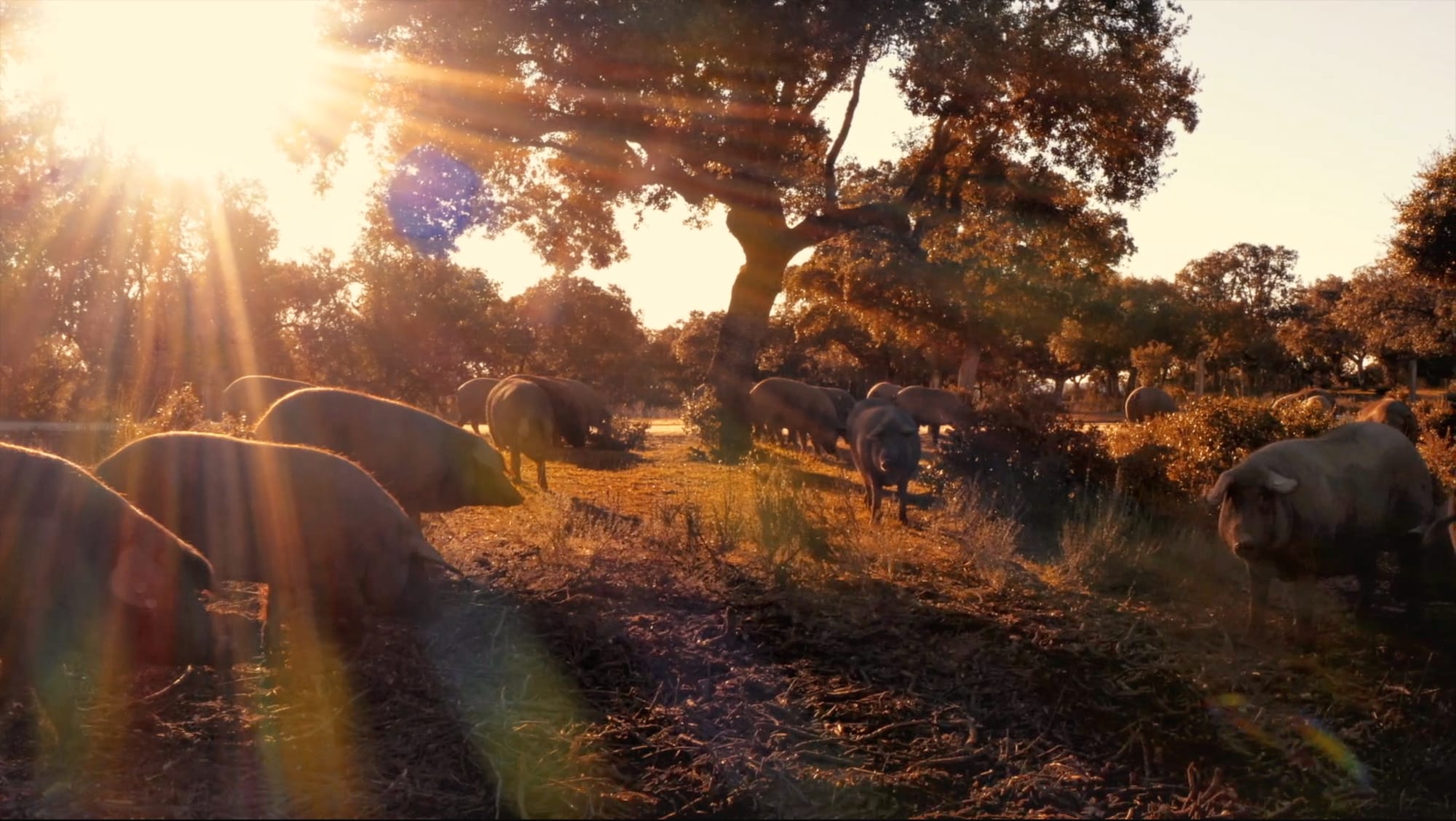 In the final months of their lives, Fermín’s pigs are turned loose to roam the Dehesa—a sprawling oak-dotted pasture in western Spain—during the Montanera season (October through February). There, they feed almost exclusively on acorns (bellotas), wild herbs, and grasses.